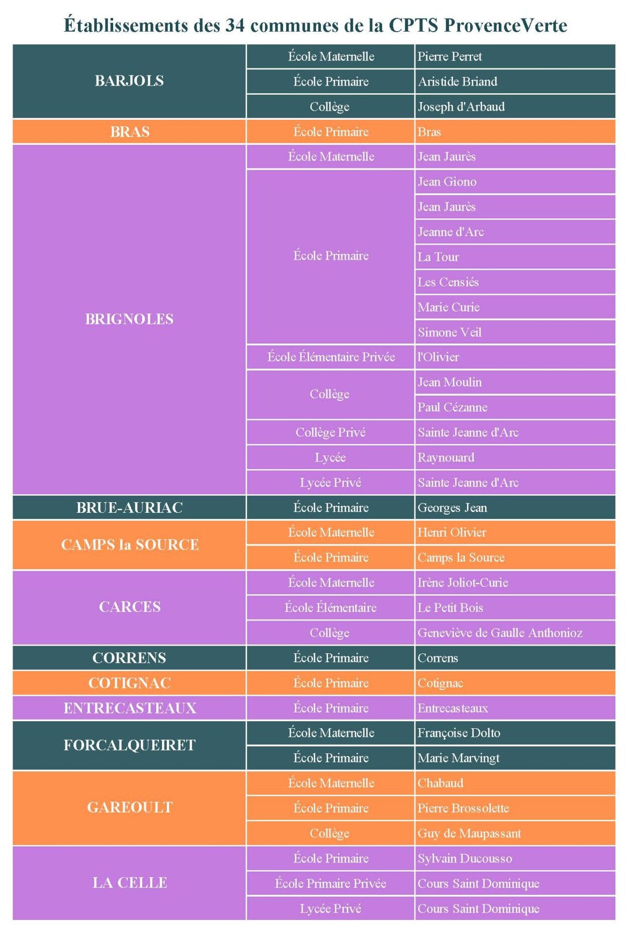 Établissements scolaires des communes de la CPTS